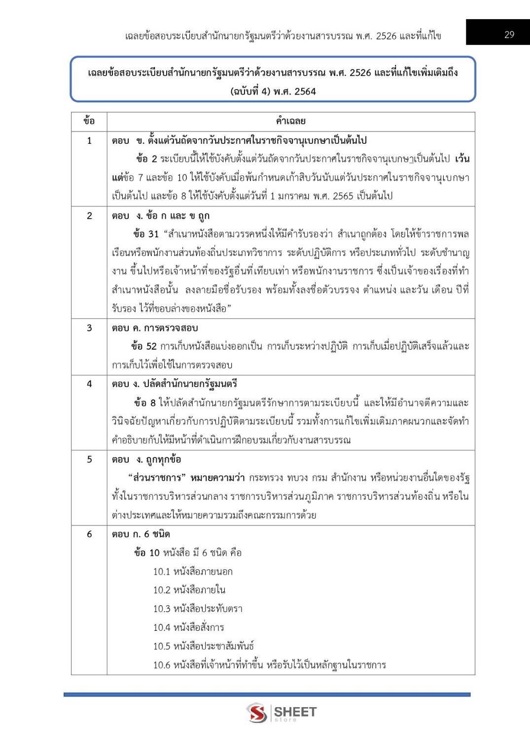 – แนวข้อสอบสรุปสาระสำคัญระเบียบสำนักนายกรัฐมนตรีว่าด้วยงานสารบรรณ พ.ศ. 2526 และที่แก้ไขเพิ่มเติมถึง (ฉบับที่ 4) พ.ศ. 2564