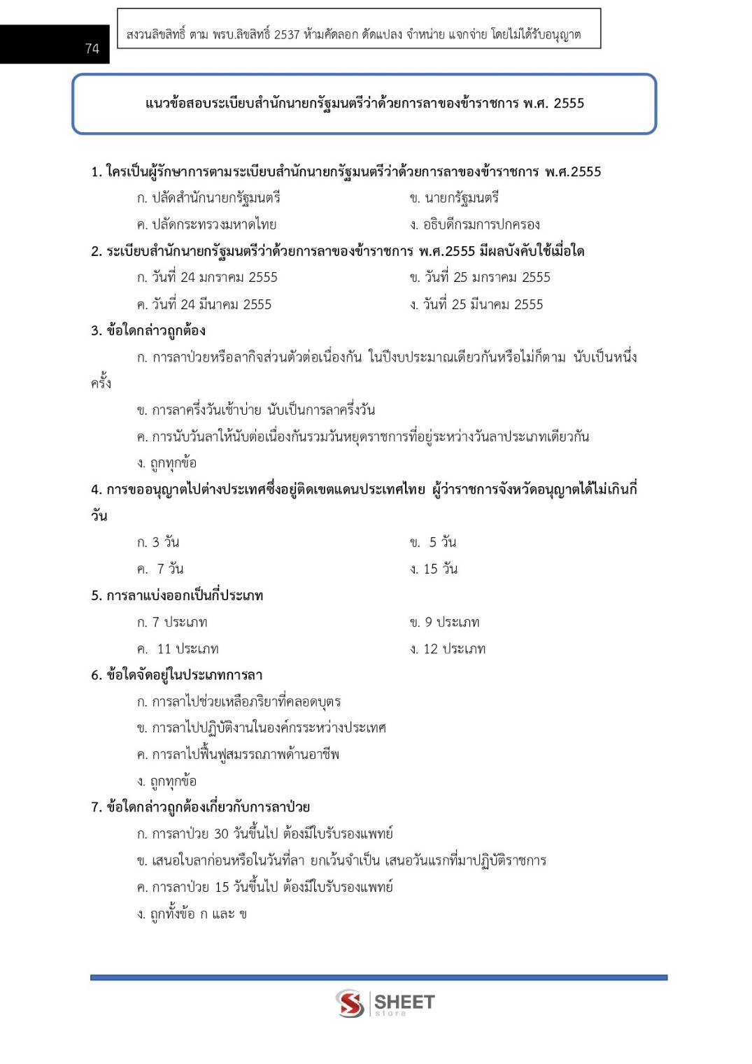 – แนวข้อสอบสรุประเบียบสำนักนายกรัฐมนตรีว่าด้วยการลาของข้าราชการ พ.ศ. 2555