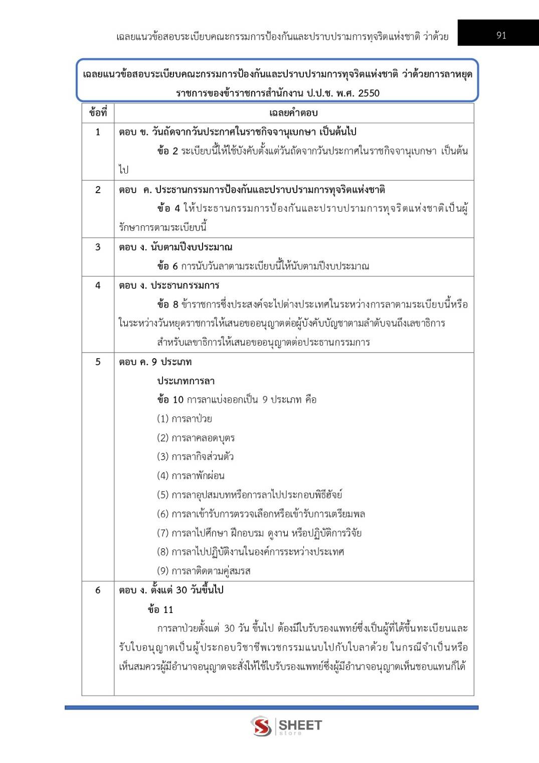 – แนวข้อสอบระเบียบคณะกรรมการป้องกันและปราบปรามการทุจริตแห่งชาติ ว่าด้วยการลาหยุดราชการของข้าราชการสำนักงาน ป.ป.ช. พ.ศ. 2550