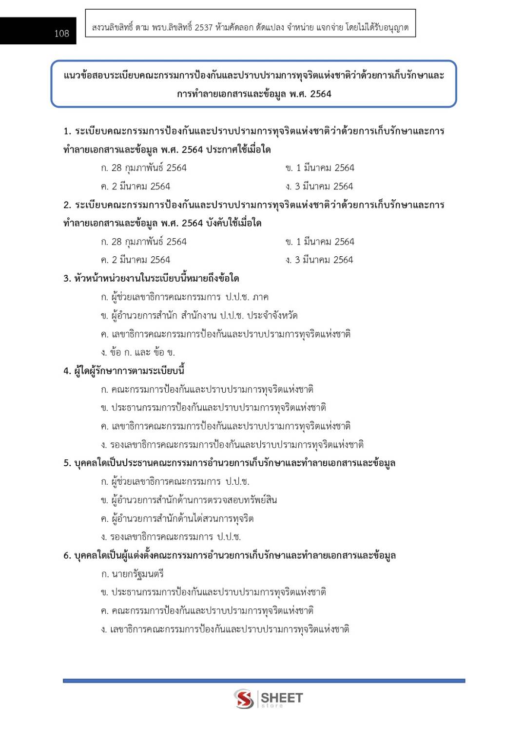 – แนวข้อสอบระเบียบคณะกรรมการป้องกันและปราบปรามการทุจริตแห่งชาติว่าด้วยการเก็บรักษาและการทำลายเอกสารและข้อมูล พ.ศ. 2564