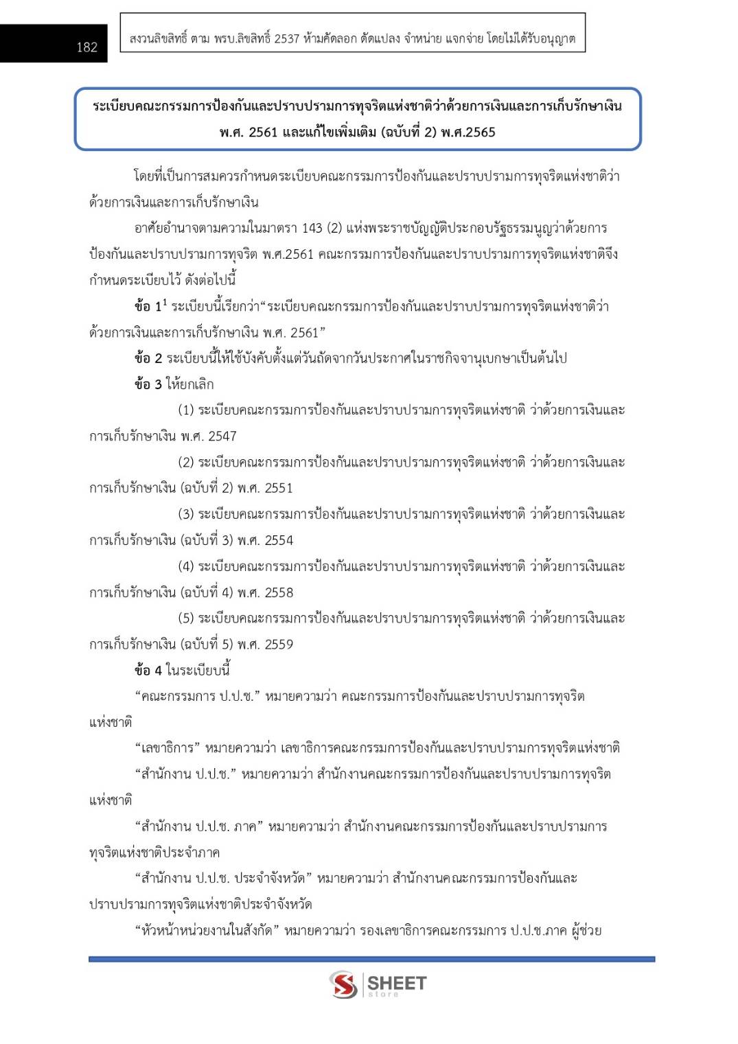 – แนวข้อสอบระเบียบคณะกรรมการป้องกันและปราบปรามการทุจริตแห่งชาติว่าด้วยการเงินและการเก็บรักษาเงิน พ.ศ. 2561 และแก้ไขเพิ่มเติม (ฉบับที่ 2) พ.ศ. 2565