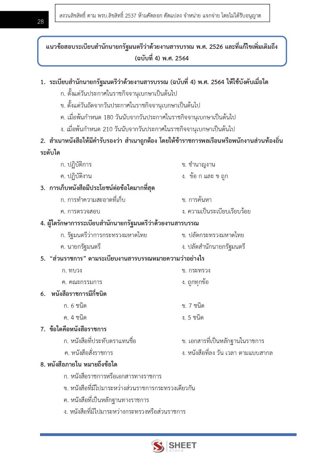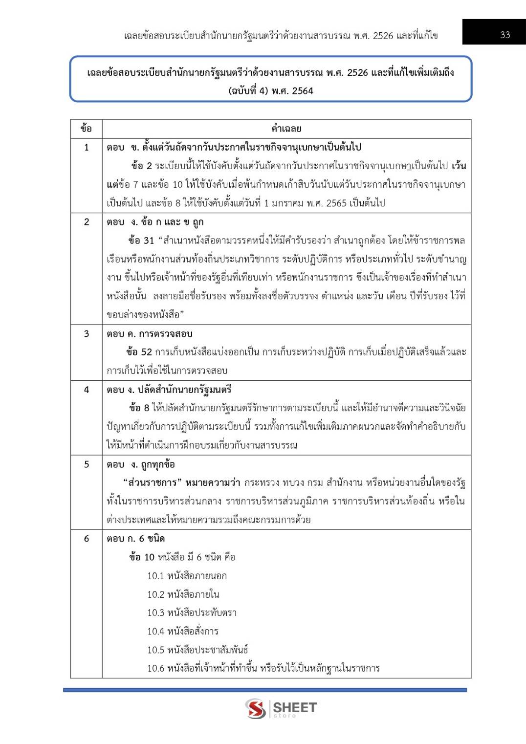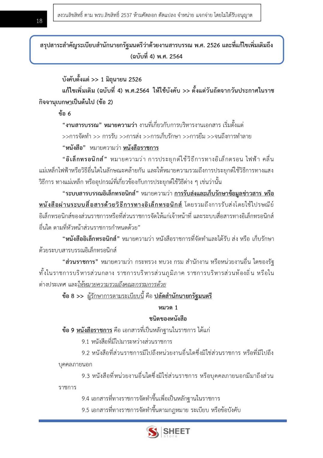– แนวข้อสอบสรุปสาระสำคัญระเบียบสำนักนายกรัฐมนตรีว่าด้วยงานสารบรรณ พ.ศ. 2526 และแก้ไขเพิ่มเติมถึง (ฉบับที่ 4) พ.ศ. 2564