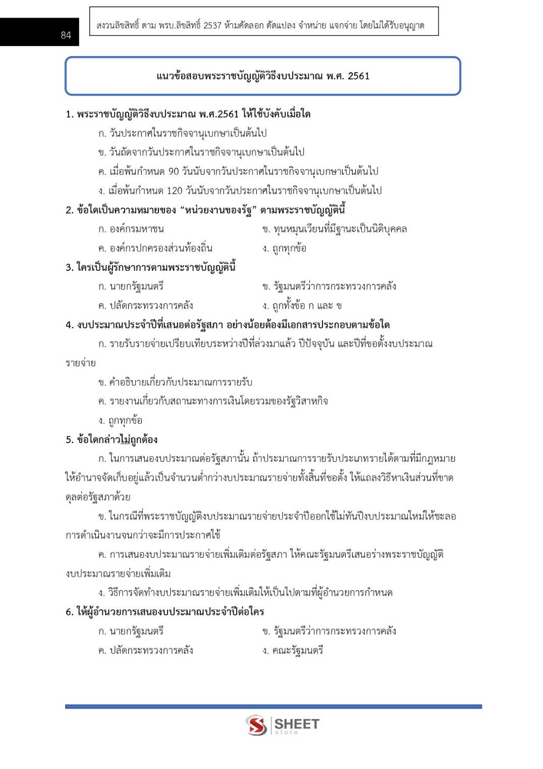– แนวข้อสอบพระราชบัญญัติวิธีการงบประมาณ พ.ศ. 2561