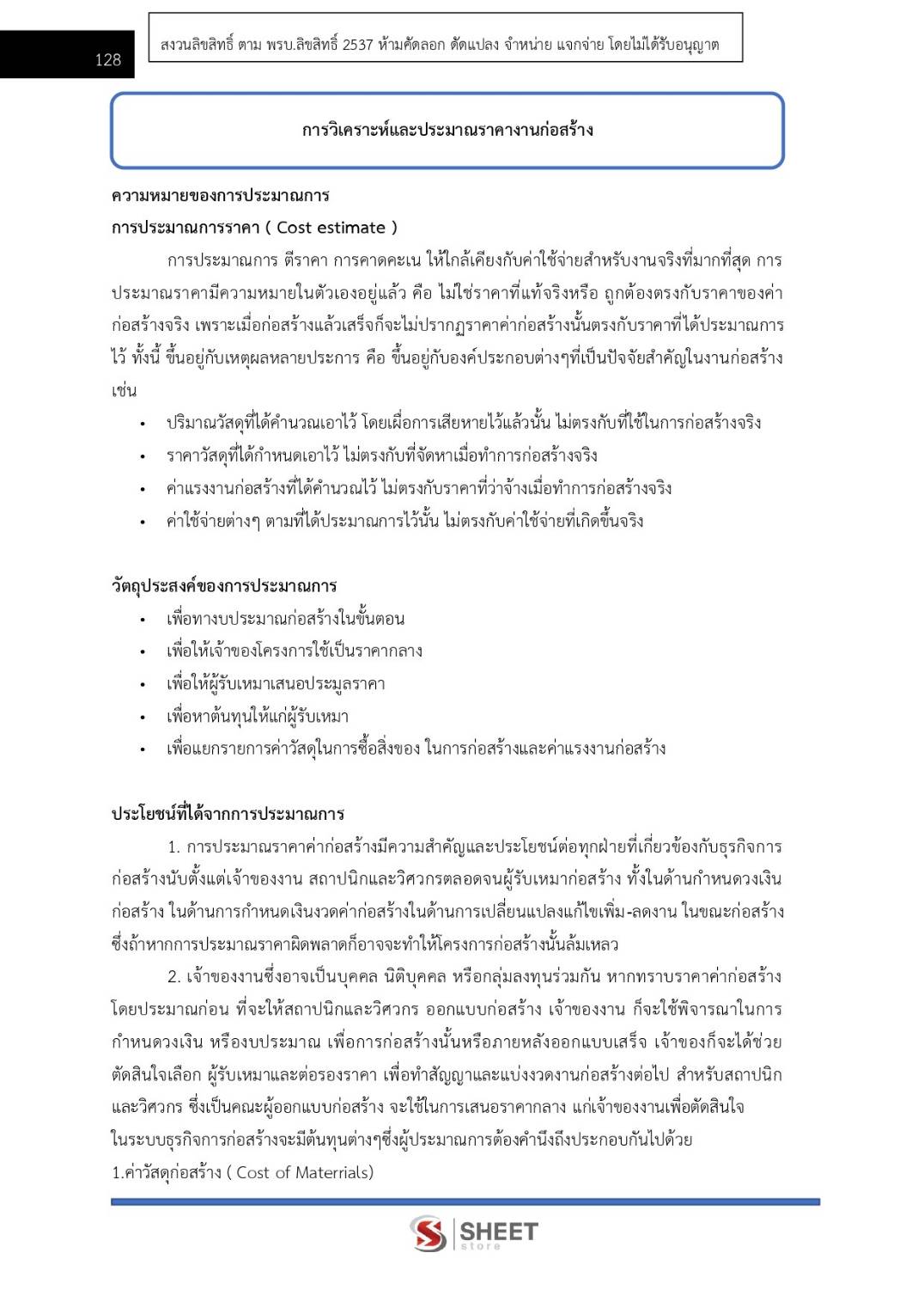 – การวิเคราะห์และประมาณราคางานก่อสร้าง