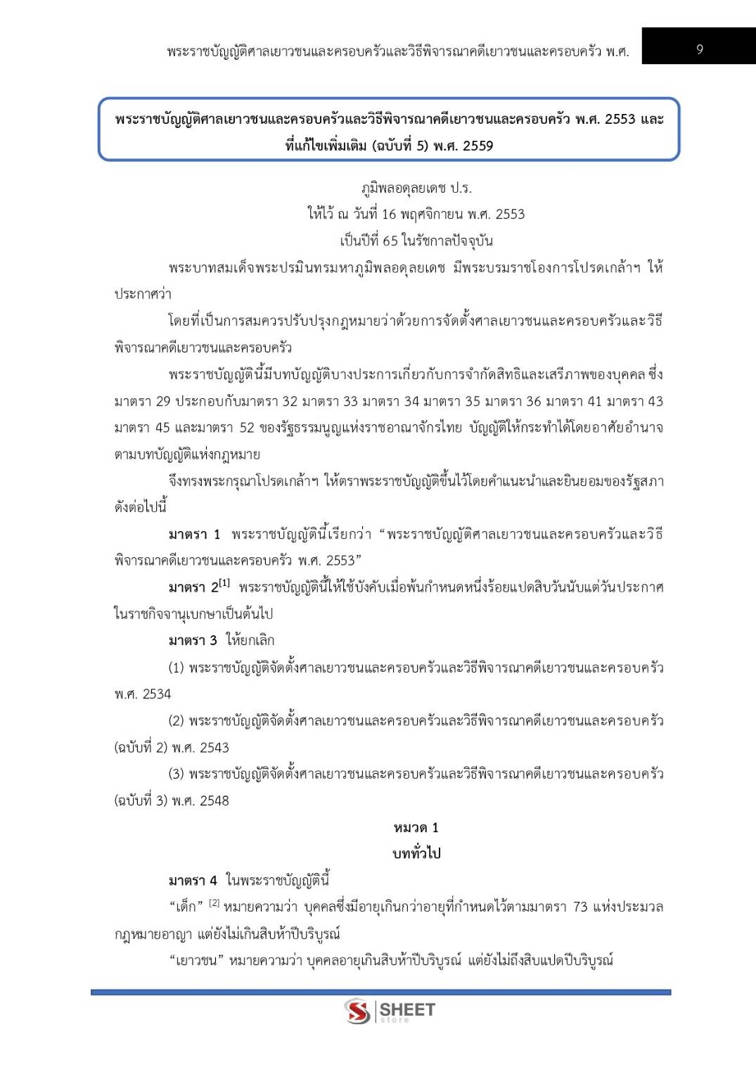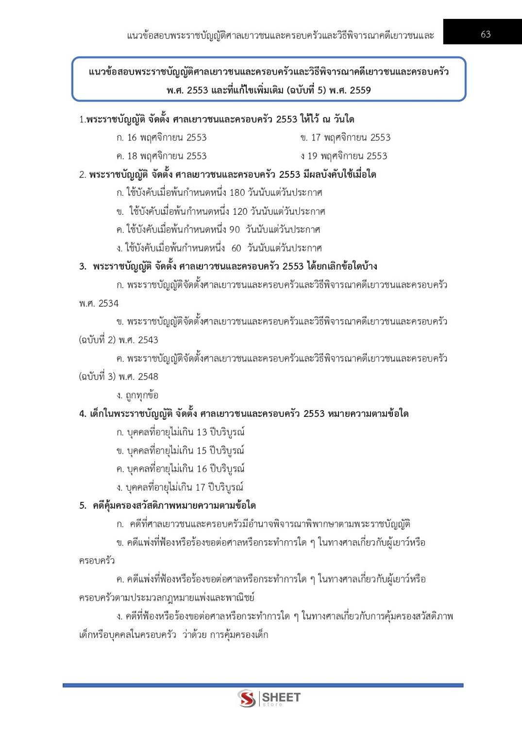 – แนวข้อสอบพระราชบัญญัติศาลเยาวชนและครอบครัวและวิธีพิจารณาคดีเยาวชนและครอบครัว พ.ศ. 2553 และที่แก้ไขเพิ่มเติม (ฉบับที่ 5) พ.ศ. 2559