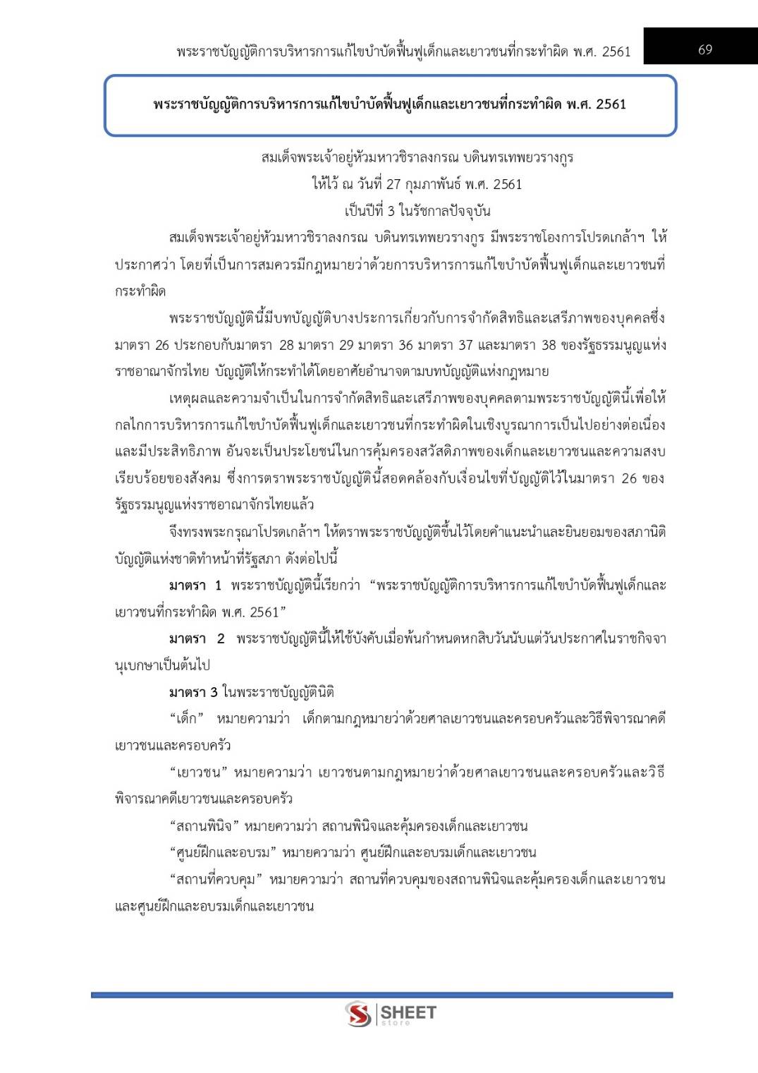– แนวข้อสอบพระราชบัญญัติการบริหารการแก้ไขบำบัดฟื้นฟูเด็กและเยาวชนที่กระทำผิด พ.ศ. 2561