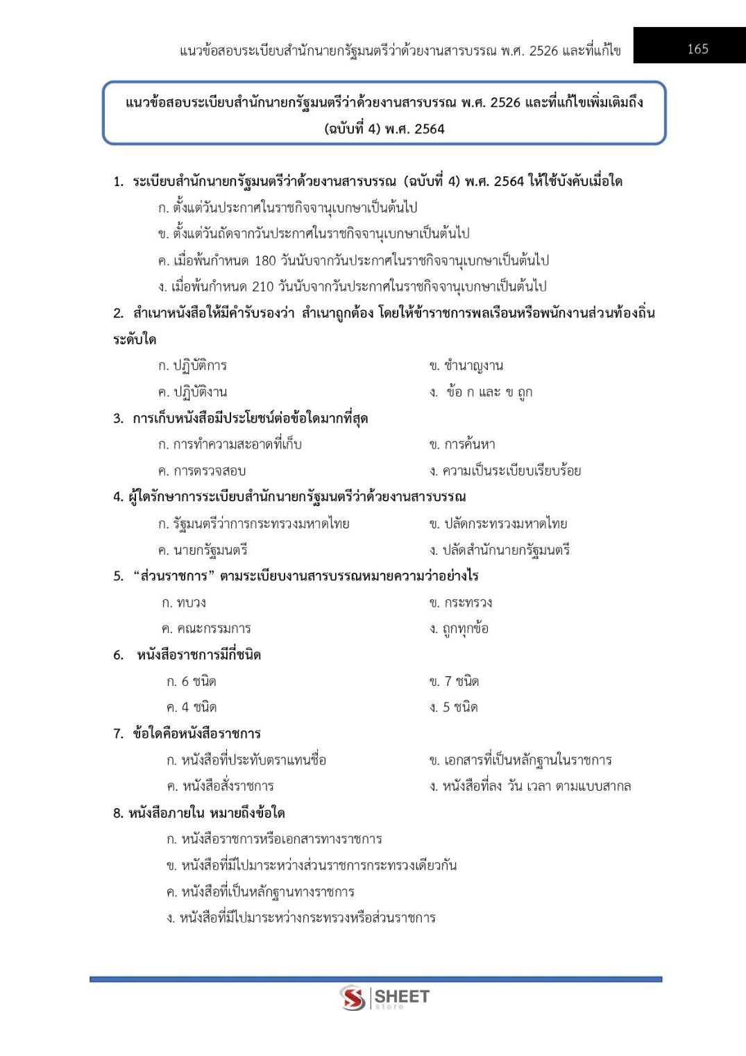 – แนวข้อสอบสรุปสาระสำคัญระเบียบสำนักนายกรัฐมนตรีว่าด้วยงานสารบรรณ พ.ศ. 2526 และที่แก้ไขเพิ่มเติมถึง (ฉบับที่ 4) พ.ศ. 2564