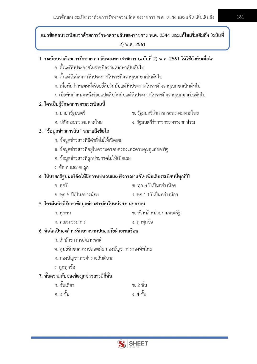 – แนวข้อสอบสรุปสาระสำคัญระเบียบว่าด้วยการรักษาความลับของราชการ พ.ศ. 2544 และแก้ไขเพิ่มเติม (ฉบับที่ 2) พ.ศ. 2561