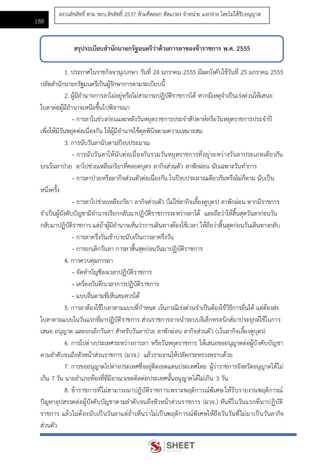 – สรุประเบียบสำนักนายกรัฐมนตรีว่าด้วยการลาของข้าราชการ พ.ศ. 2555