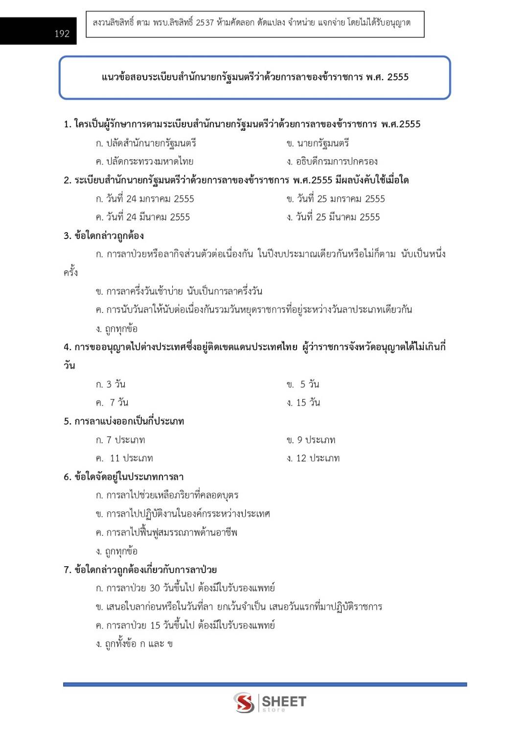 – แนวข้อสอบสรุประเบียบสำนักนายกรัฐมนตรีว่าด้วยการลาของข้าราชการ พ.ศ. 2555