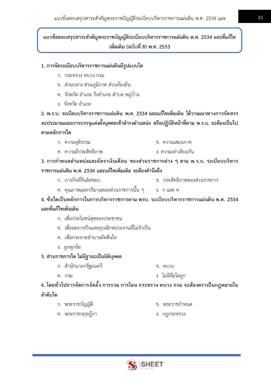 – แนวข้อสอบสรุปสาระสำคัญพระราชบัญญัติระเบียบบริหารราชการแผ่นดิน พ.ศ. 2534 และที่แก้ไขเพิ่มเติม (ฉบับที่ 8) พ.ศ. 2553