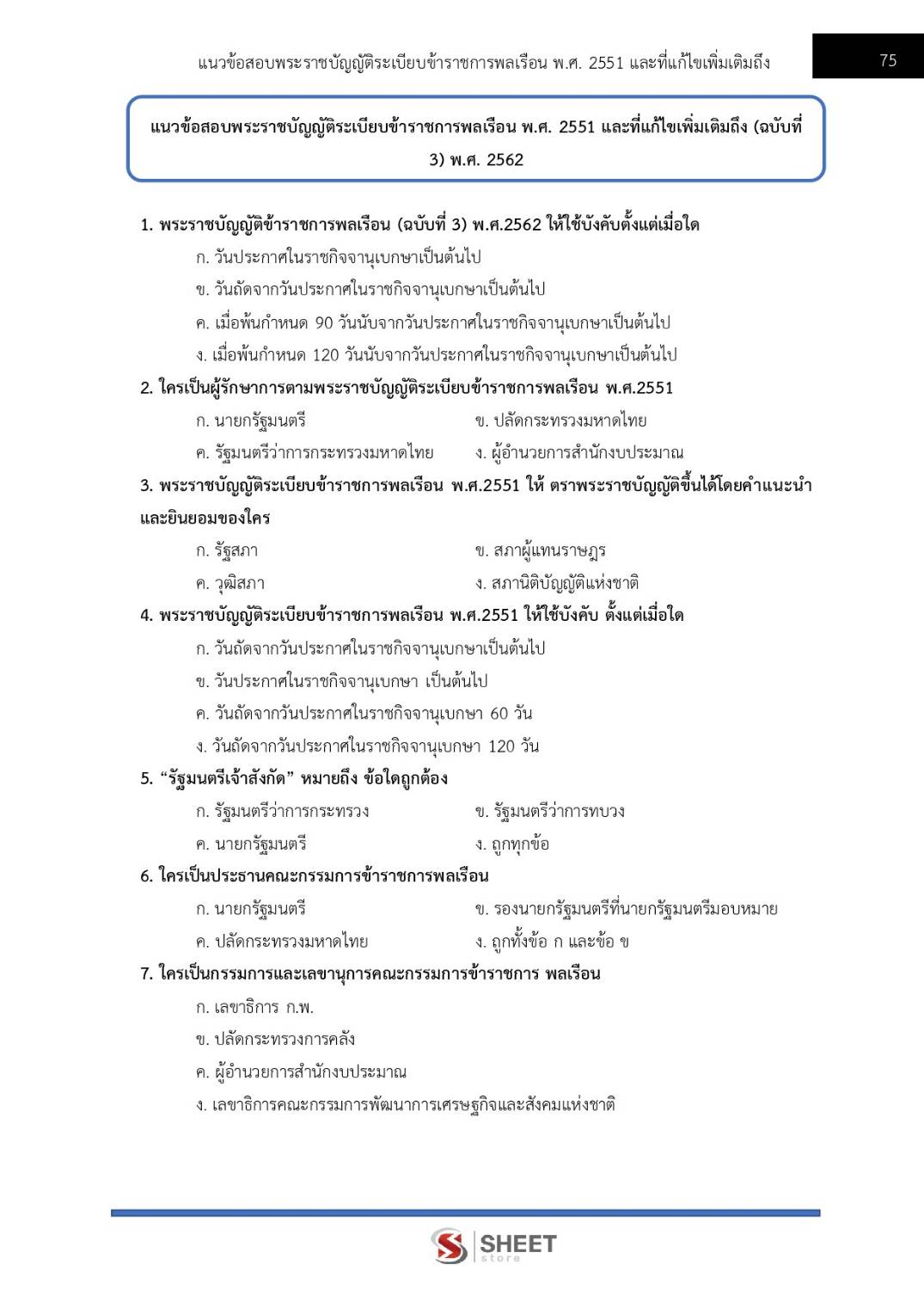 – แนวข้อสอบสรุปสาระสำคัญพระราชบัญญัติระเบียบข้าราชการพลเรือน พ.ศ. 2551 และที่แก้ไขเพิ่มเติมถึง (ฉบับที่ 3) พ.ศ. 2562