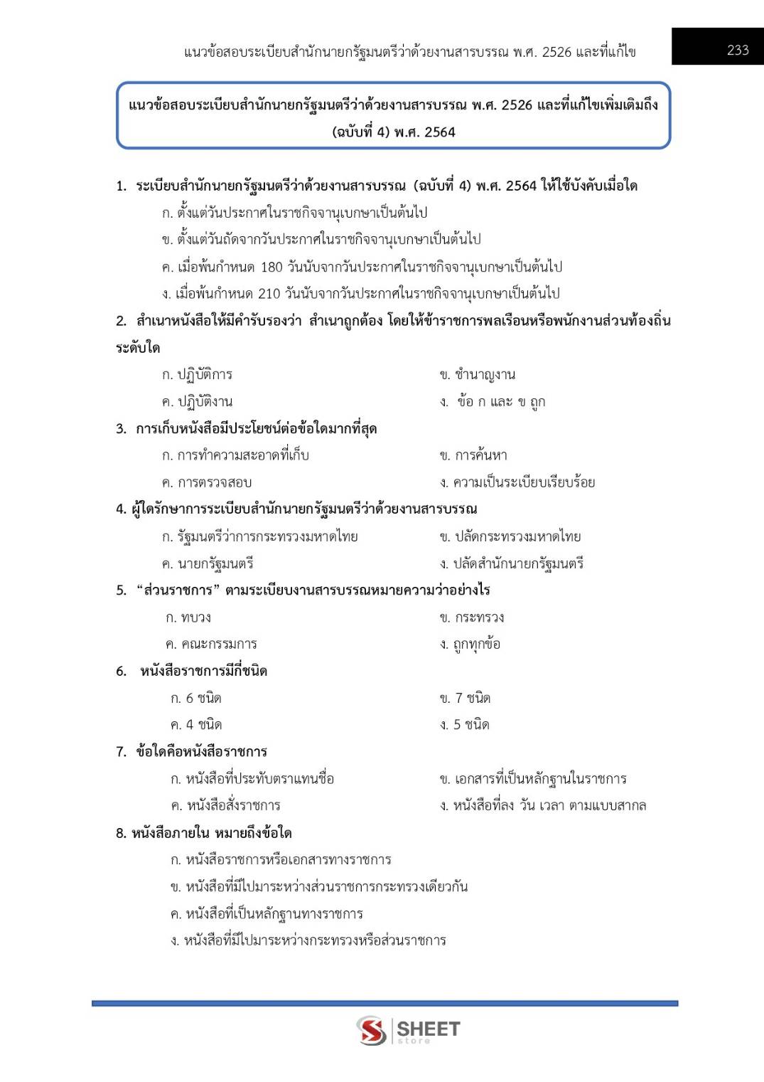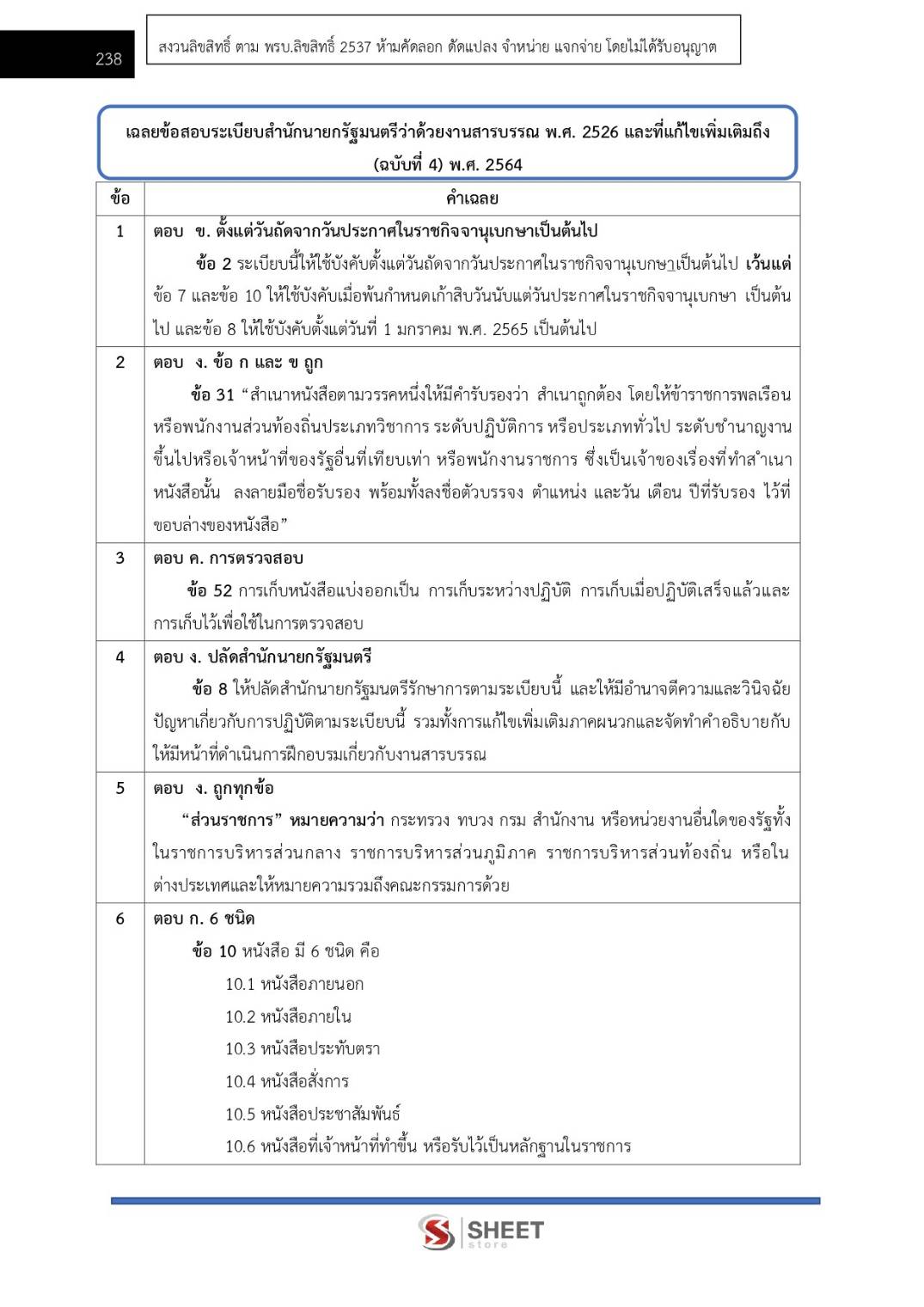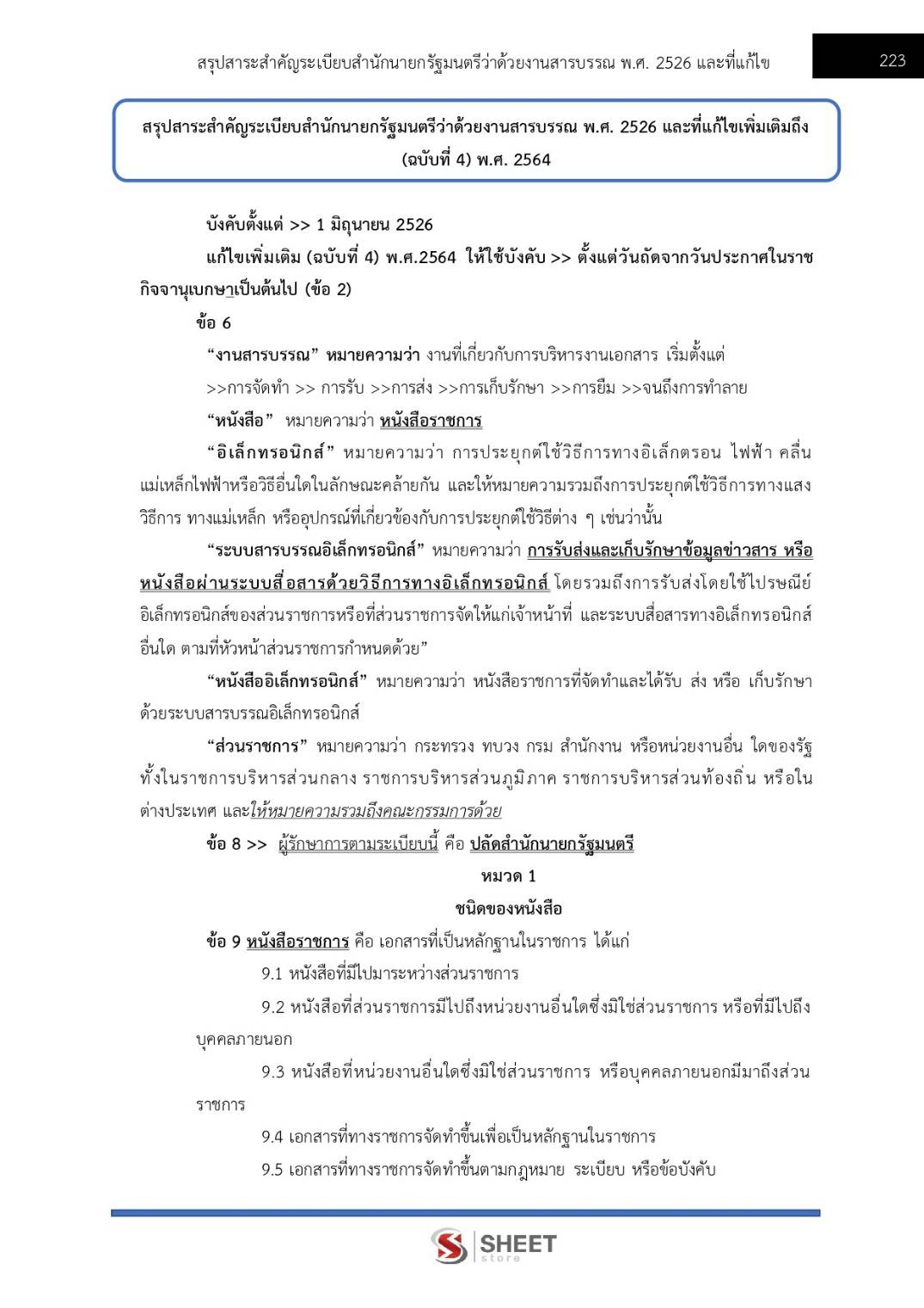 – แนวข้อสอบสรุปสาระสำคัญระเบียบสำนักนายกรัฐมนตรีว่าด้วยงานสารบรรณ พ.ศ. 2526 และที่แก้ไขเพิ่มเติมถึง (ฉบับที่ 4) พ.ศ. 2564