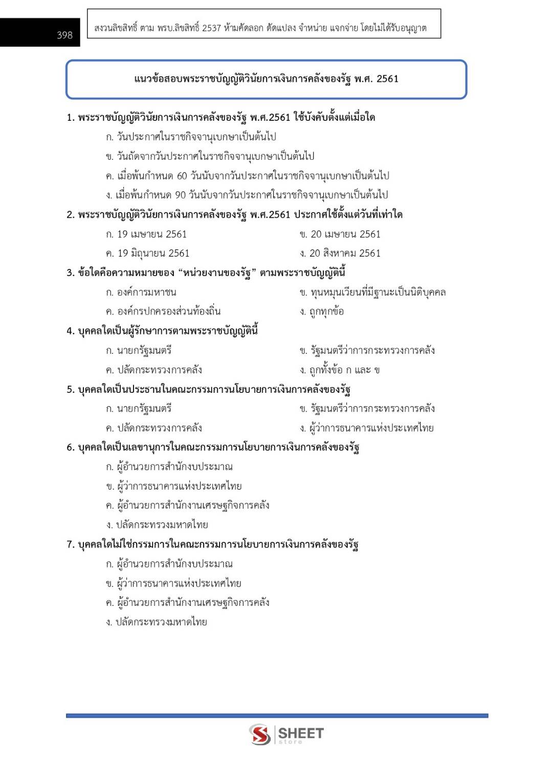 – แนวข้อสอบพระราชบัญญัติวินัยการเงินการคลังของรัฐ พ.ศ. 2561