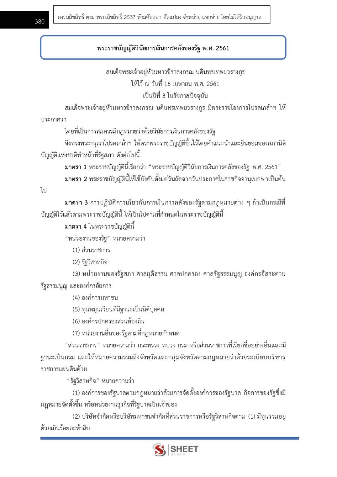 – พระราชบัญญัติวินัยการเงินการคลังของรัฐ พ.ศ. 2561
