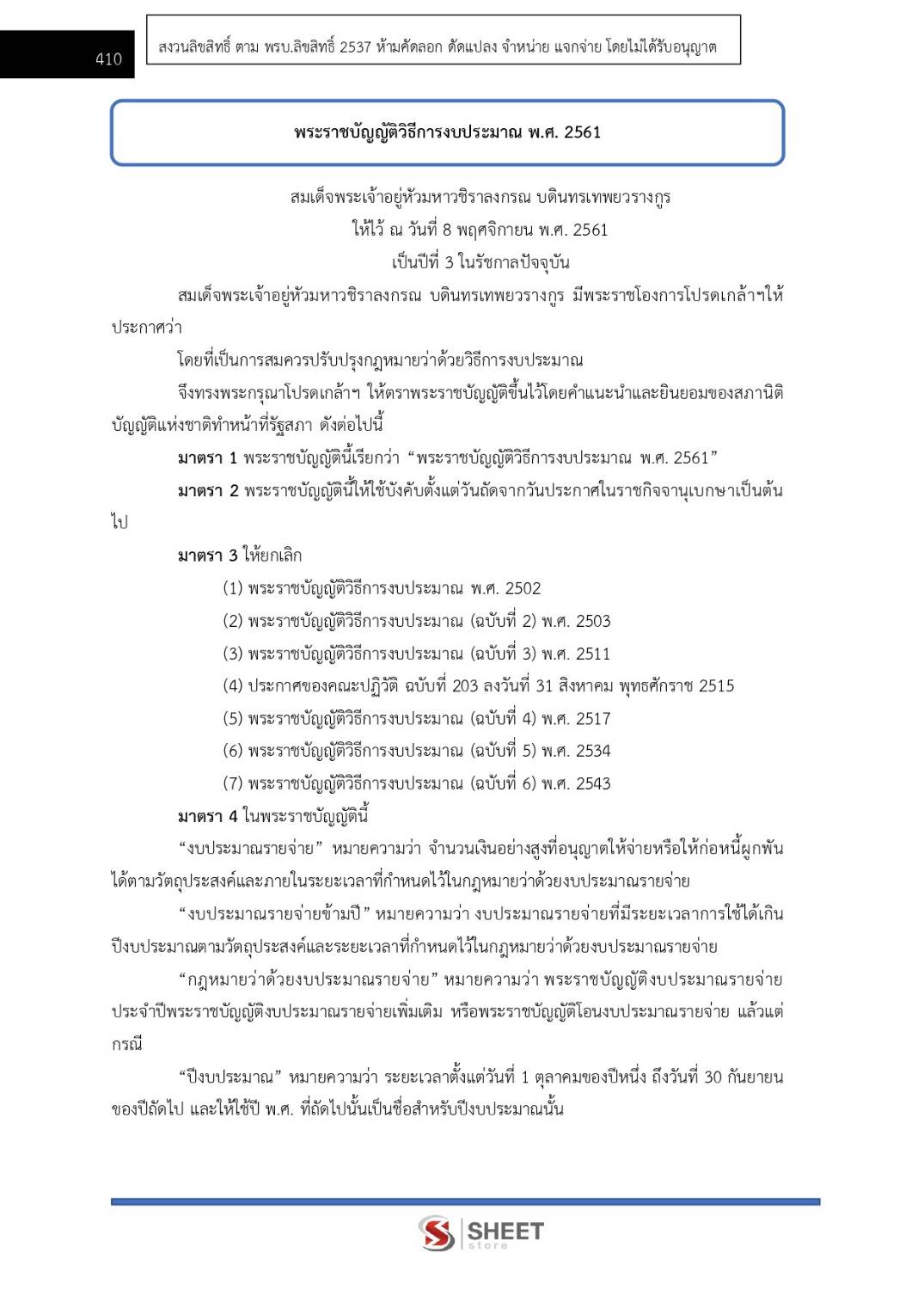 – พระราชบัญญัติวิธีการงบประมาณ พ.ศ. 2561