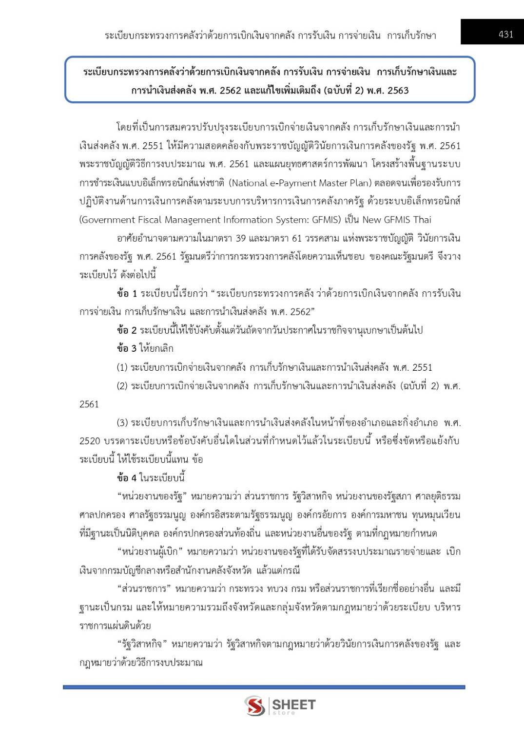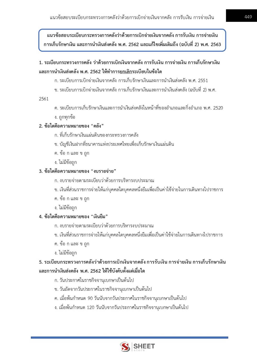 – แนวข้อสอบ ระเบียบกระทรวงการคลังว่าด้วยการเบิกเงินจากคลัง การรับเงิน การจ่ายเงิน การเก็บรักษาเงินและการนำเงินส่งคลัง พ.ศ. 2562 และแก้ไขเพิ่มเติมถึง (ฉบับที่ 2) พ.ศ. 2563