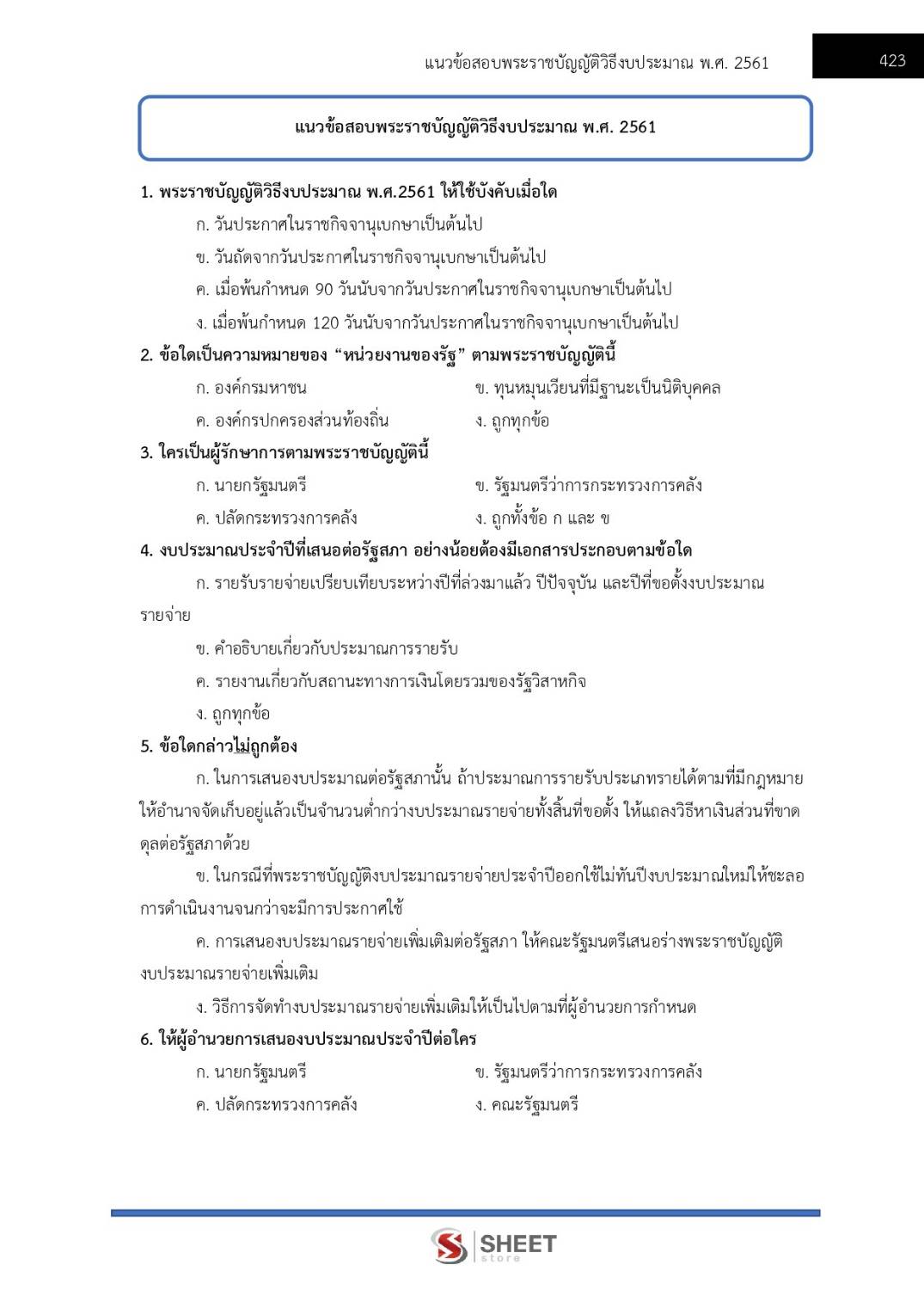 – แนวข้อสอบพระราชบัญญัติวิธีการงบประมาณ พ.ศ. 2561
