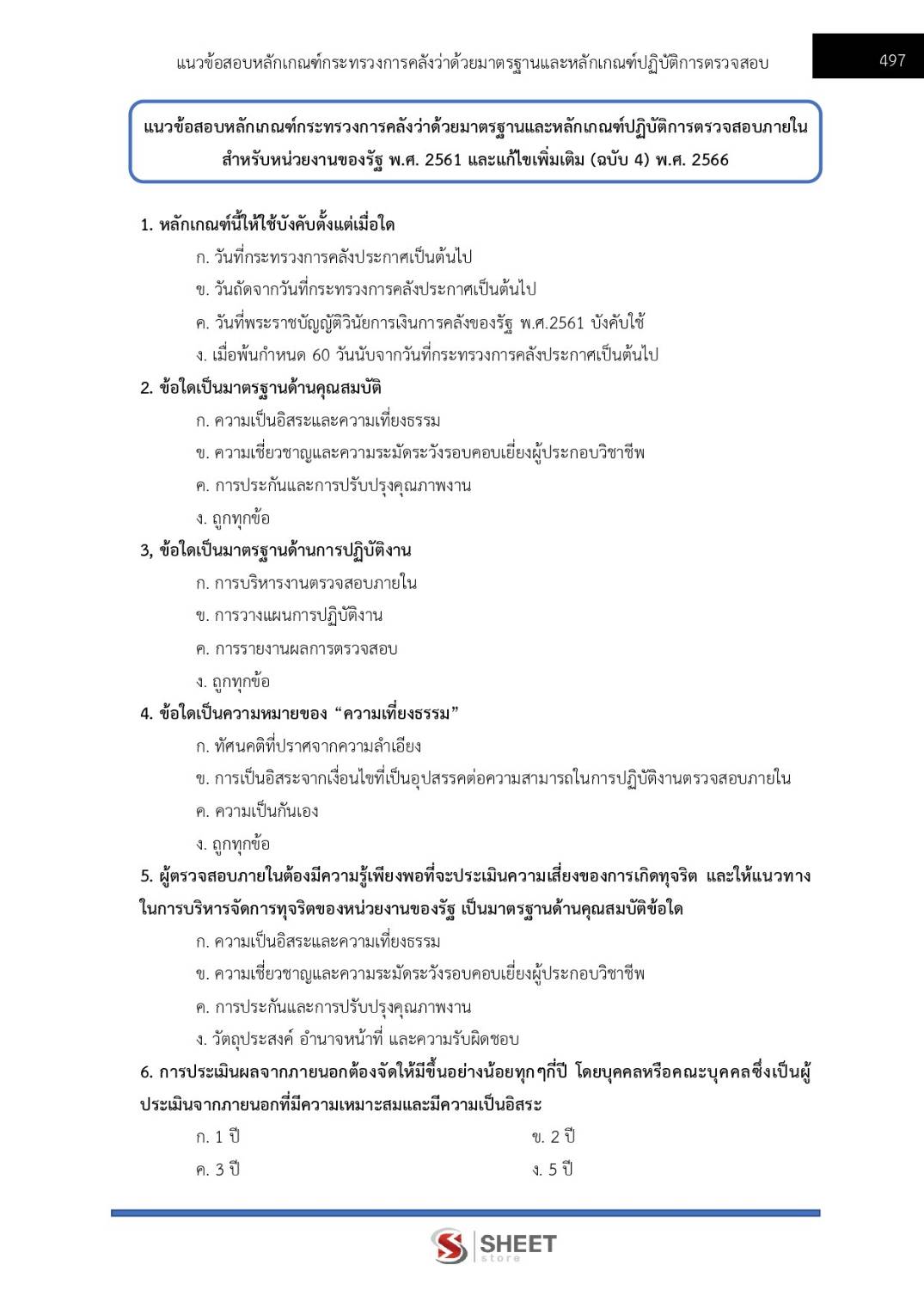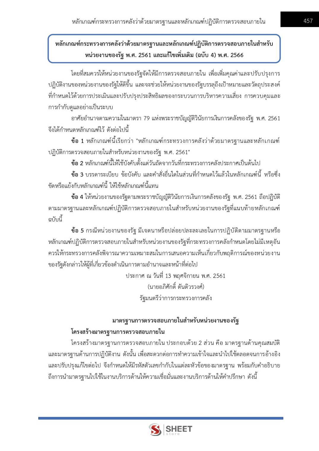 – แนวข้อสอบหลักเกณฑ์กระทรวงการคลังว่าด้วยมาตรฐานและหลักเกณฑ์ปฏิบัติการตรวจสอบภายในสำหรับหน่วยงานของรัฐ พ.ศ. 2561 และแก้ไขเพิ่มเติม (ฉบับ 4) พ.ศ. 2566
