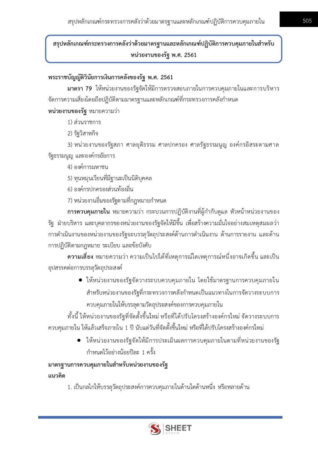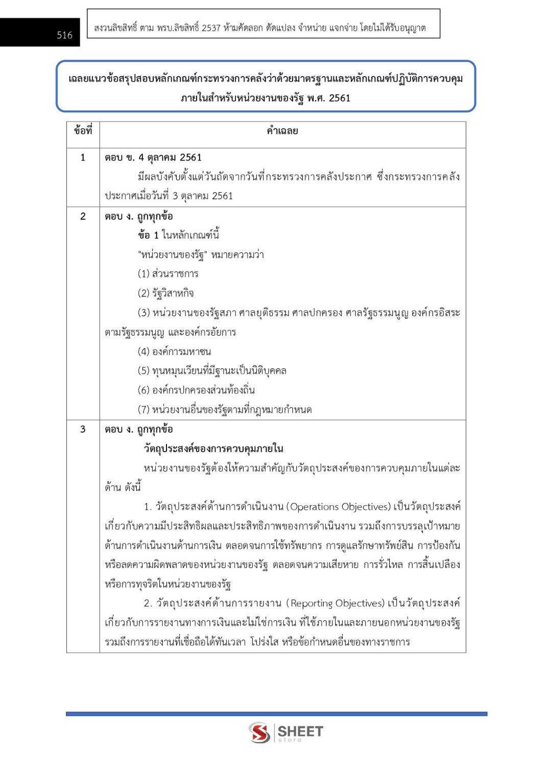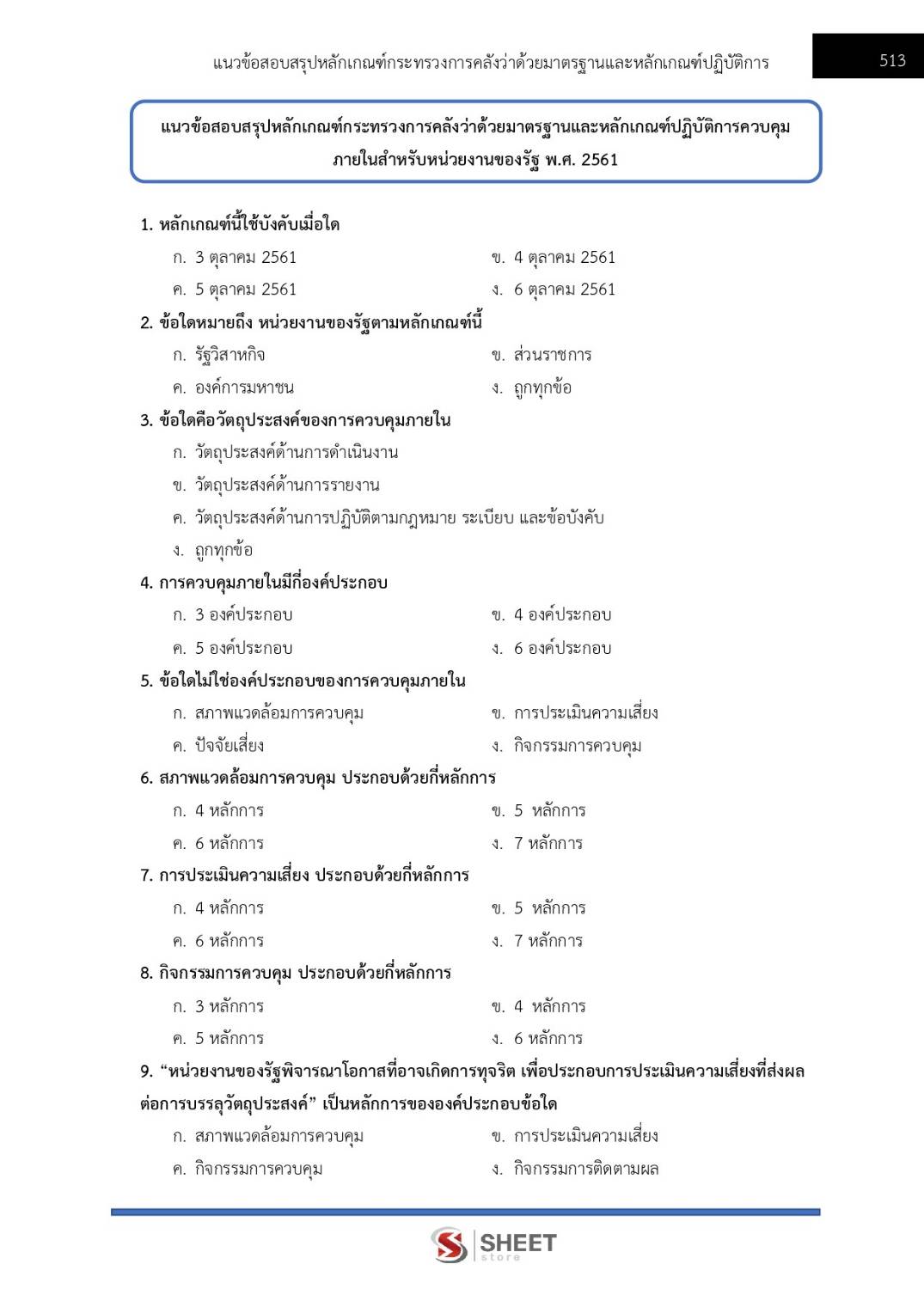– แนวข้อสอบสรุปหลักเกณฑ์กระทรวงการคลังว่าด้วยมาตรฐานและหลักเกณฑ์ปฏิบัติการควบคุมภายในสำหรับหน่วยงานของรัฐ พ.ศ. 2561