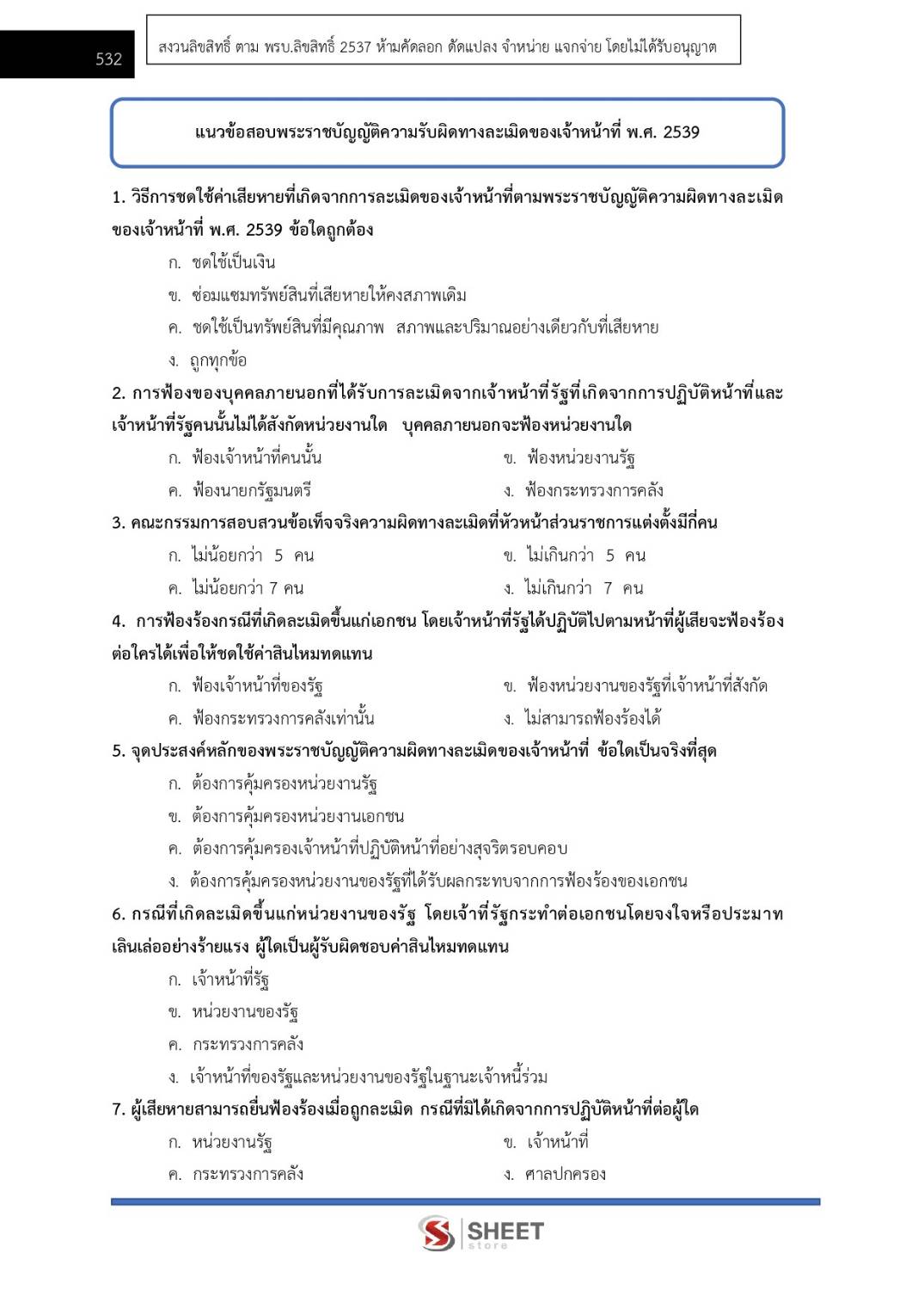 – แนวข้อสอบพระราชบัญญัติความรับผิดทางละเมิดของเจ้าหน้าที่ พ.ศ. 2539