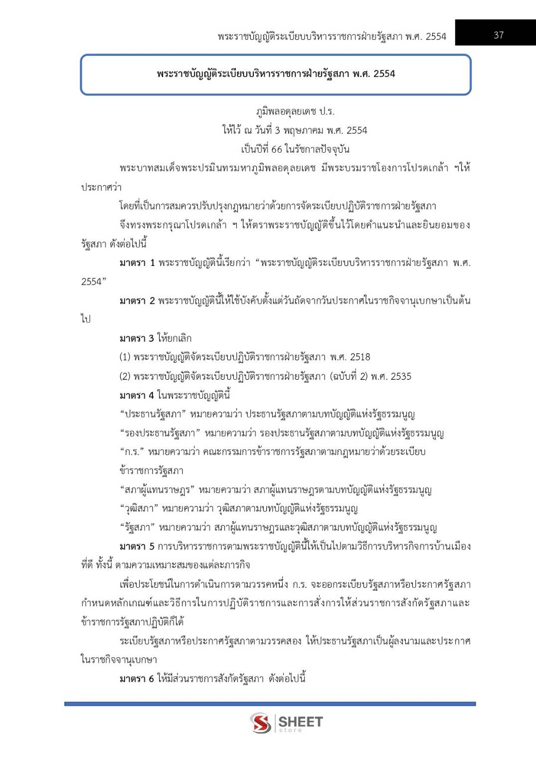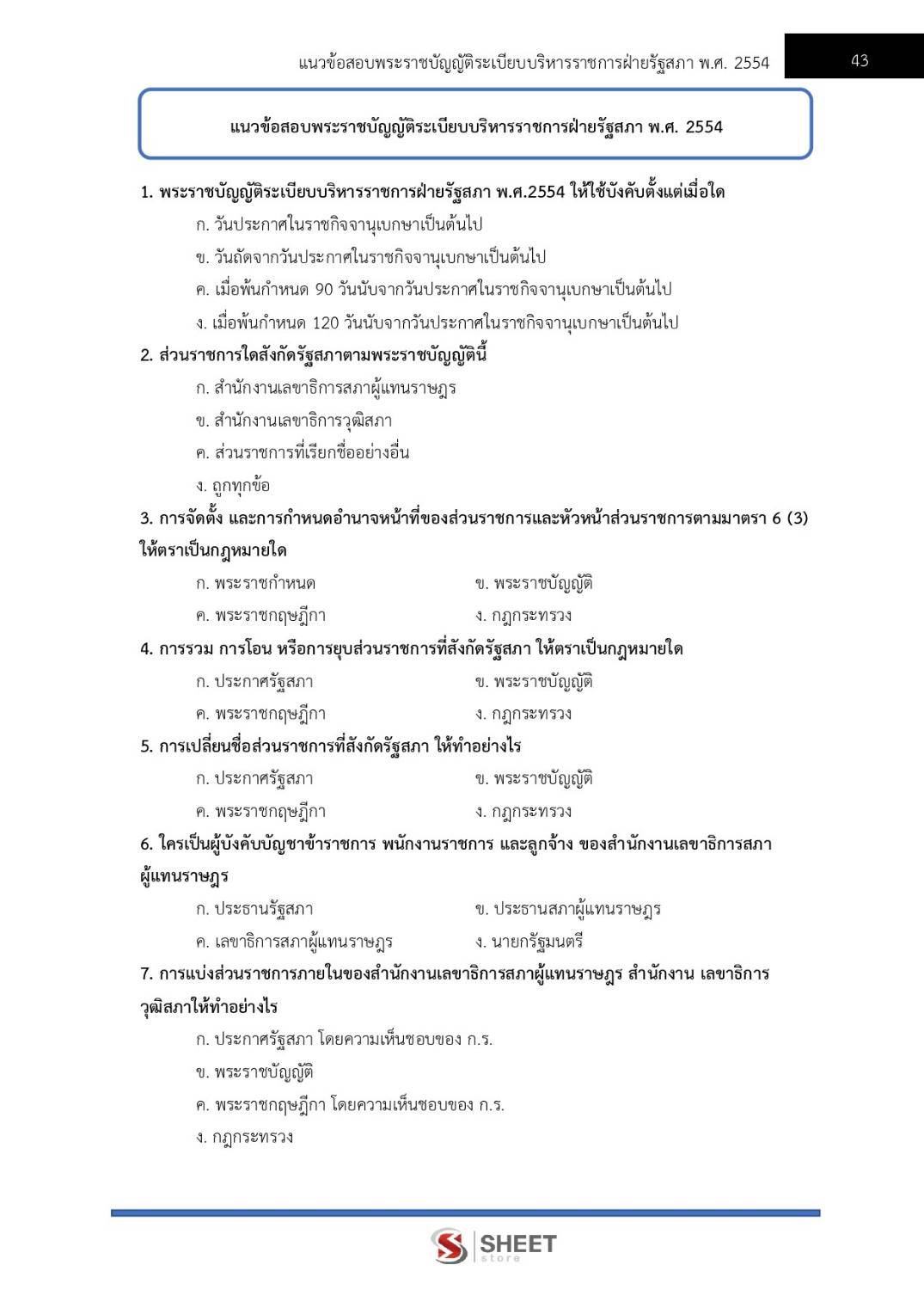 – แนวข้อสอบพระราชบัญญัติระเบียบบริหารราชการฝ่ายรัฐสภา พ.ศ. 2554