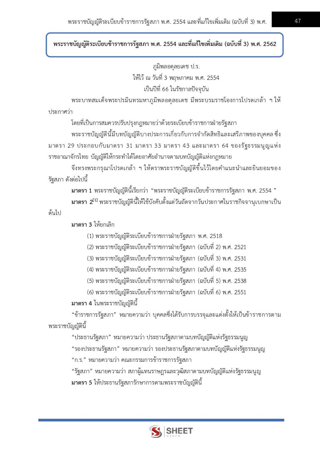 – แนวข้อสอบพระราชบัญญัติระเบียบข้าราชการรัฐสภา พ.ศ. 2554 และที่แก้ไขเพิ่มเติม (ฉบับที่ 3) พ.ศ. 2562