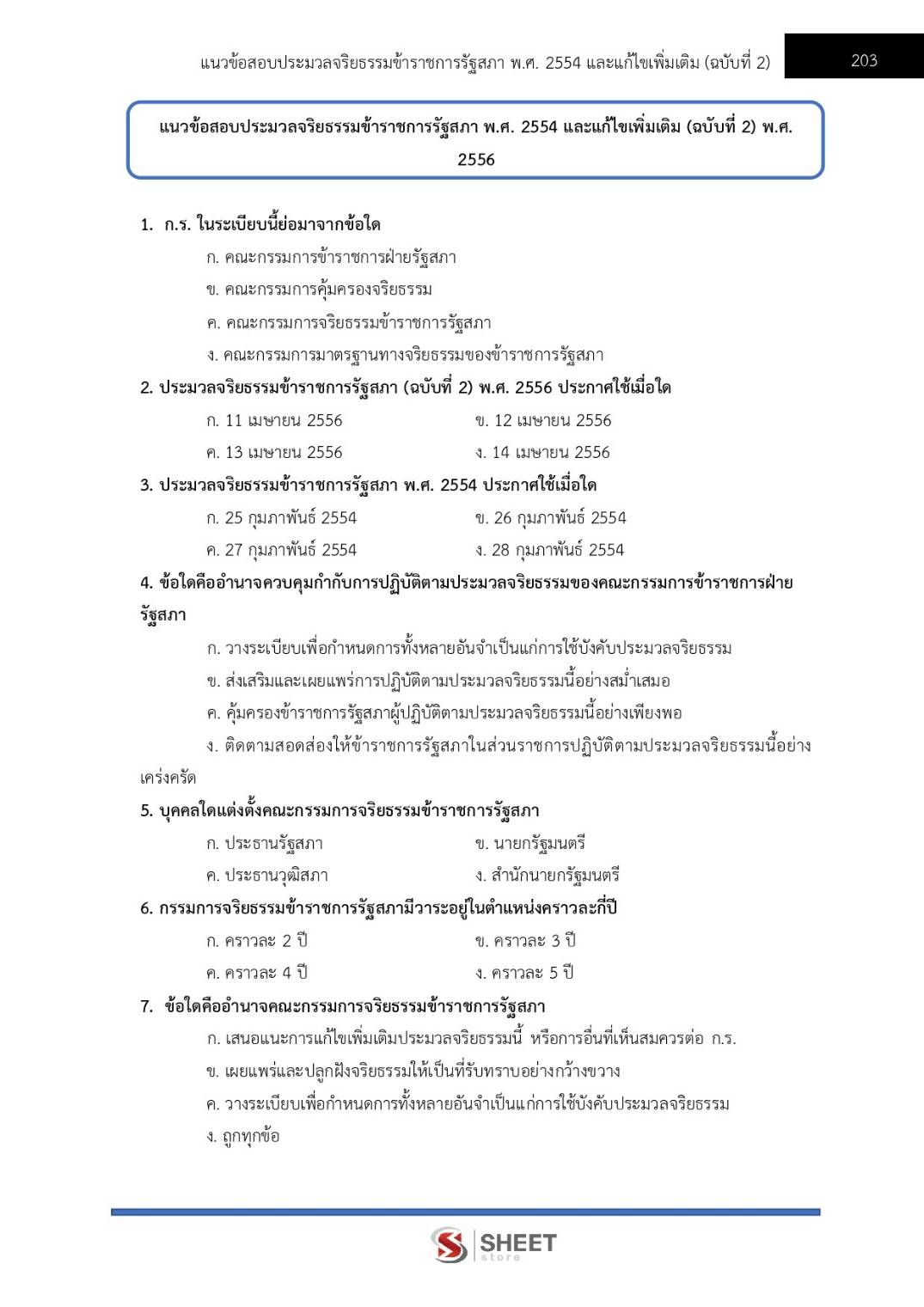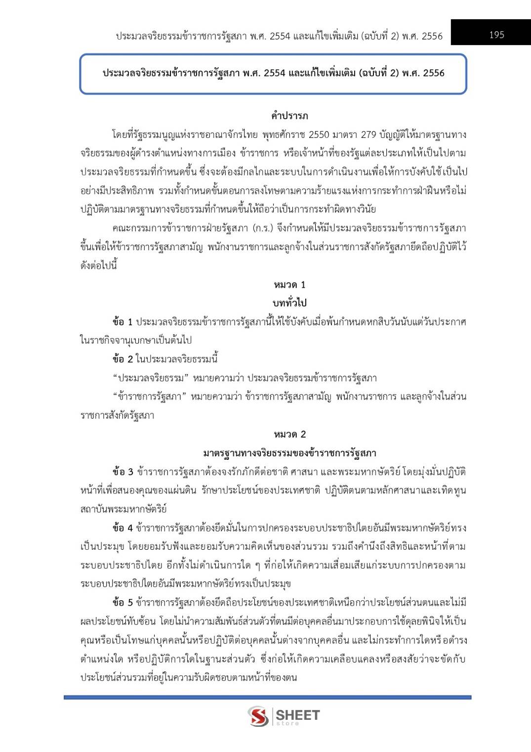 – แนวข้อสอบประมวลจริยธรรมข้าราชการรัฐสภา พ.ศ. 2554 และที่แก้ไขเพิ่มเติม (ฉบับที่ 2) พ.ศ. 2556