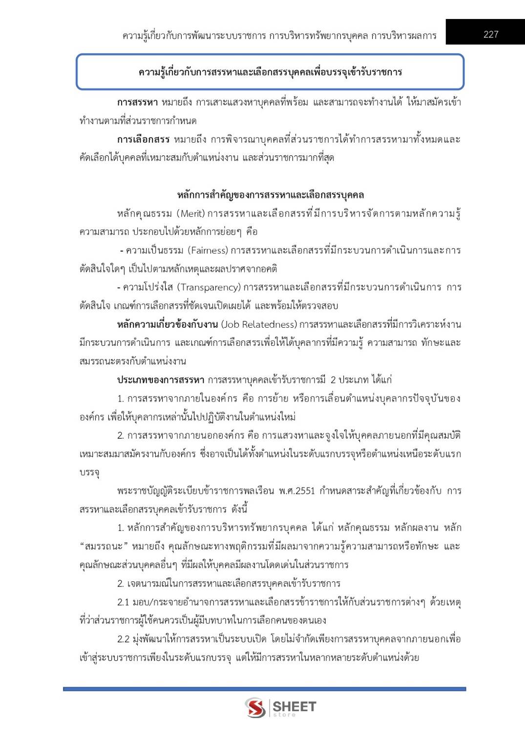 – ความรู้เกี่ยวกับการสรรหาและเลือกสรรบุคคลเพื่อบรรจุเข้ารับราชการ