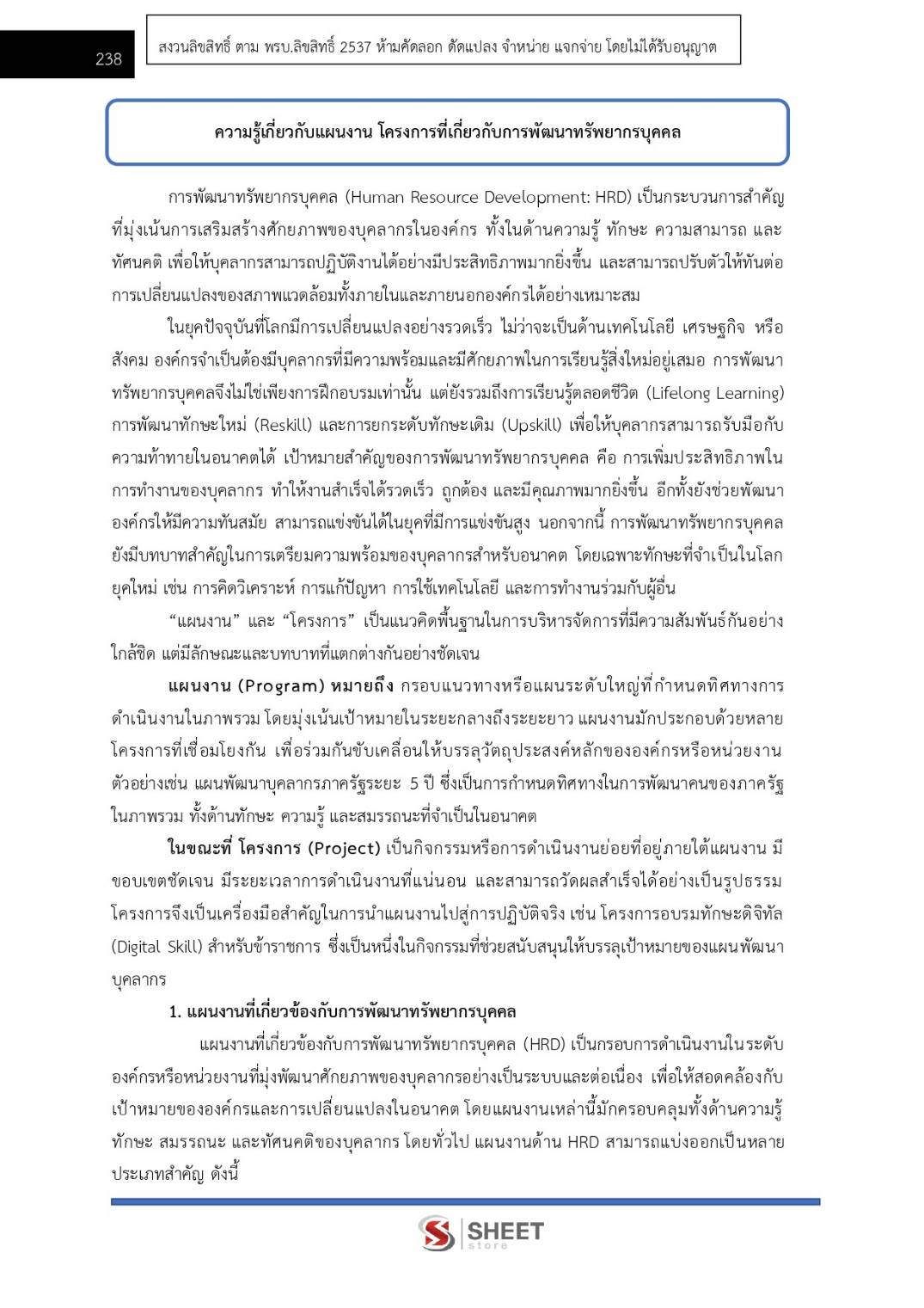 – ความรู้เกี่ยวกับแผนงาน โครงการที่เกี่ยวกับการพัฒนาทรัพยากรบุคคล
