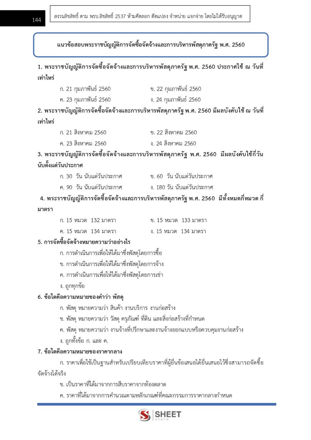 – แนวข้อสอบสรุปสาระสำคัญระเบียบกระทรวงการคลังว่าด้วยการจัดซื้อจัดจ้างและการบริหารพัสดุภาครัฐ พ.ศ. 2560