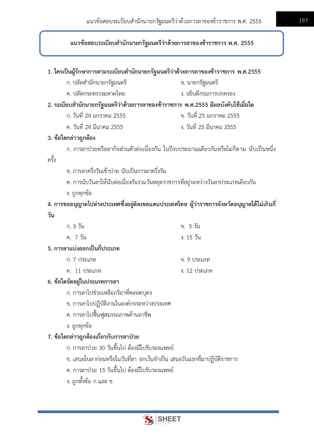 – แนวข้อสอบสรุประเบียบสำนักนายกรัฐมนตรีว่าด้วยการลาของข้าราชการ พ.ศ. 2555