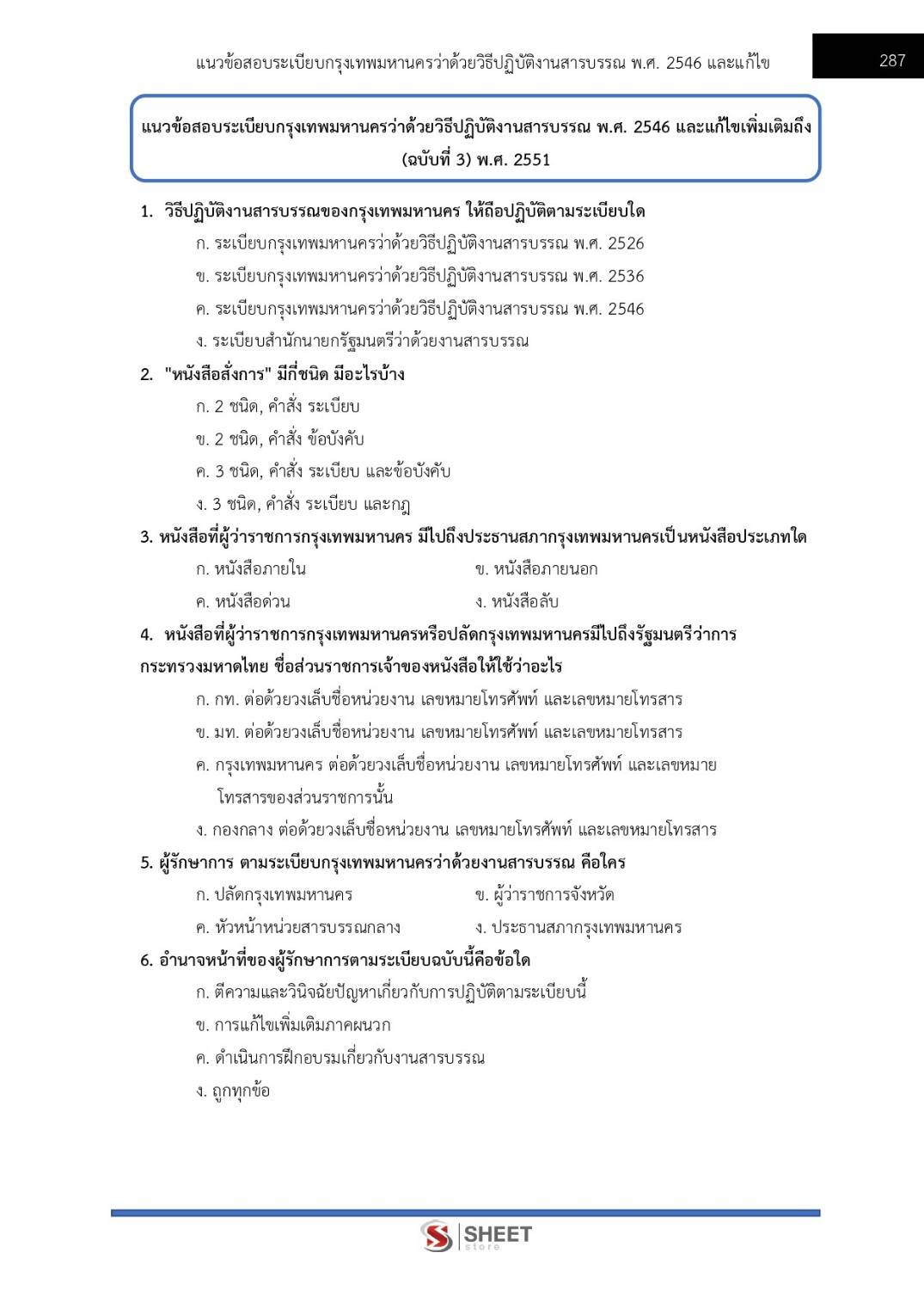 – แนวข้อสอบสรุประเบียบกรุงเทพมหานครว่าด้วยวิธีปฏิบัติงานสารบรรณ พ.ศ. 2546 และแก้ไขเพิ่มเติมถึง (ฉบับที่ 3) พ.ศ. 2551