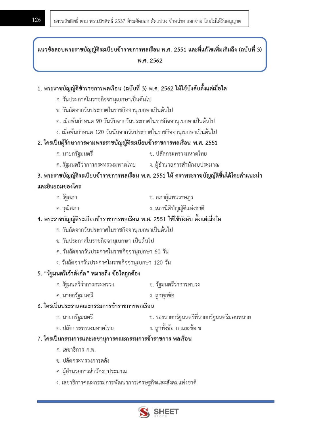 – แนวข้อสอบพระราชบัญญัติระเบียบข้าราชการพลเรือน พ.ศ. 2551 และที่แก้ไขเพิ่มเติมถึง (ฉบับที่ 3) พ.ศ. 2562