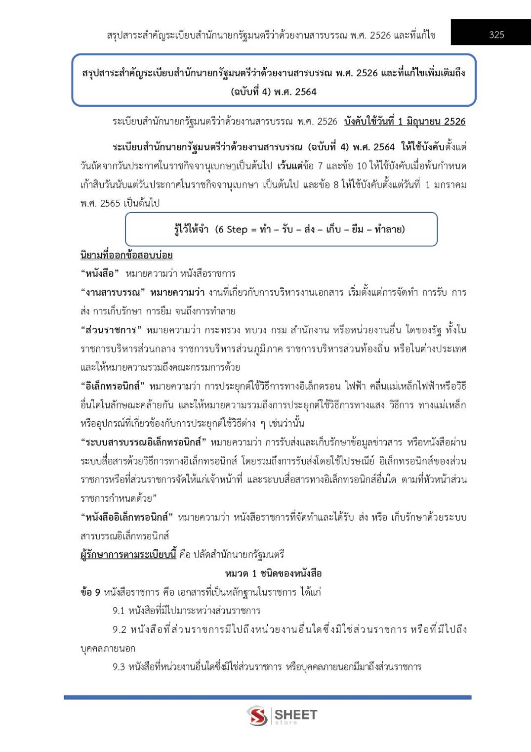 – แนวข้อสอบระเบียบสำนักนายกรัฐมนตรีว่าด้วยงานสารบรรณ พ.ศ. 2526 และที่แก้ไขเพิ่มเติมถึง (ฉบับที่ 4) พ.ศ. 2564