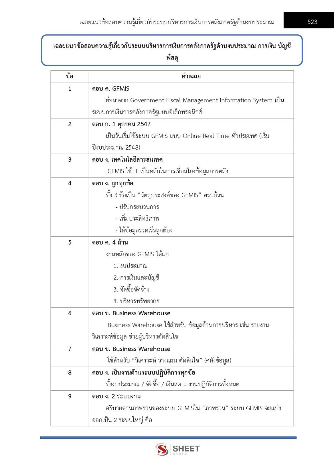 – แนวข้อสอบความรู้เกี่ยวกับระบบบริหารการเงินการคลังภาครัฐด้านงบประมาณ การเงิน บัญชี พัสดุ